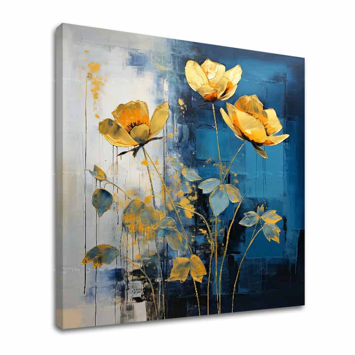 Brezčasna eleganca na platnu Zlati cvetovi v sodobnem dizajnu | različne dimenzije