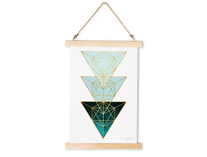 Viseče platno je na obeh straneh pritrjeno z lesenimi letvicami iz smrekovega lesa. Zahvaljujoč trpežni vrvi, ki je z ročaji pritrjena ob leseni okvir, lahko platno preprosto in elegantno obesite. Ponujamo vam različne barve obrob, ki jih lahko k platnu prilagodite po svojem okusu.