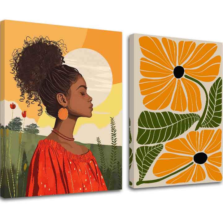 Zbirka Art in Simplicity vsebuje tridelne komplete slik z abstraktnim cvetjem, ženskimi silhuetami, organskimi linijami in nežno geometrijo. Kontrastne barve, čiste linije in poenostavljeni motivi bodo vašemu domu dodali svežino, igrivost in brezčasno eleganco.