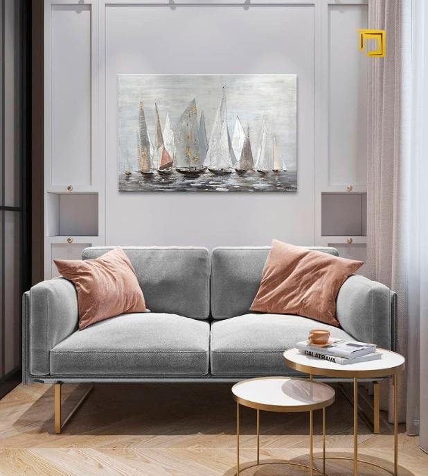 Barve slike naj se ujemajo z barvami sten in pohištva, hkrati pa naj v prostor vnesejo kontrast po vašem okusu. Če želite, da slika v prostoru izstopa in postane vpadljiv element, izberite kontrastne barve ob steni, na primer temnejšo sliko na svetli steni ali pisane motive v nevtralnem prostoru. Po drugi strani pa, če imate raje mehkejši, bolj harmoničen videz, izberite barve, ki se subtilno dopolnjujejo z odtenki stene in pohištva ter ustvarjajo miren in uravnotežen učinek.