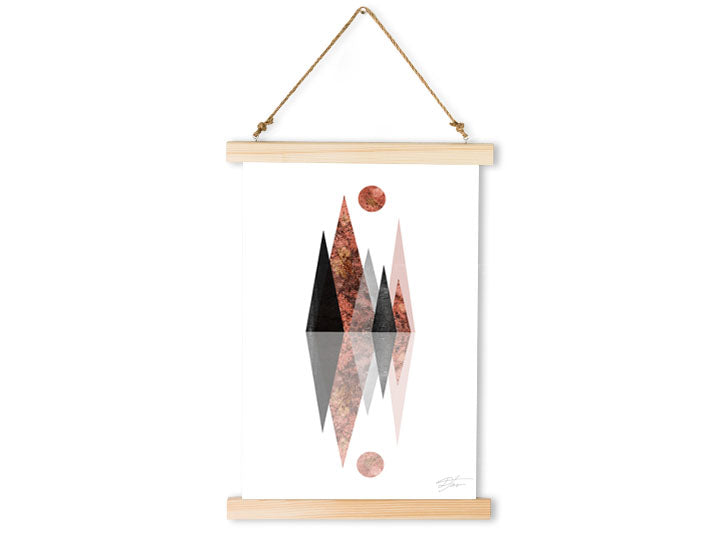 Viseče platno je na obeh straneh pritrjeno z lesenimi letvicami iz smrekovega lesa. Zahvaljujoč trpežni vrvici, ki je z ročaji pritrjena ob leseni okvir, lahko platno preprosto in elegantno obesite. Ponujamo vam različne barve obrob, ki jih lahko k platnu prilagodite po svojem okusu.