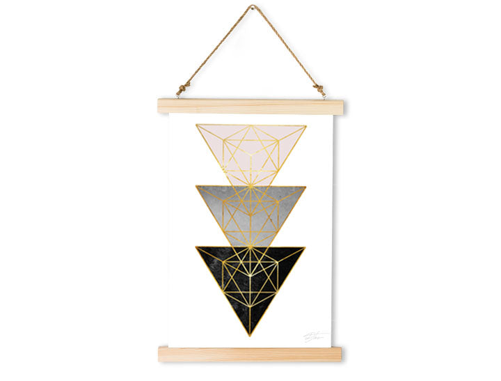 Viseče platno je na obeh straneh pritrjeno z lesenimi letvicami iz smrekovega lesa. Zahvaljujoč trpežni vrvici, ki je z ročaji pritrjena ob leseni okvir, lahko platno preprosto in elegantno obesite. Ponujamo vam različne barve obrob, ki jih lahko k platnu prilagodite po svojem okusu.