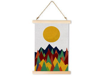 Viseče platno je na obeh straneh pritrjeno z lesenimi letvicami iz smrekovega lesa. Zahvaljujoč trpežni vrvici, ki je z ročaji pritrjena ob leseni okvir, lahko platno preprosto in elegantno obesite. Ponujamo vam različne barve obrob, ki jih lahko k platnu prilagodite po svojem okusu.
