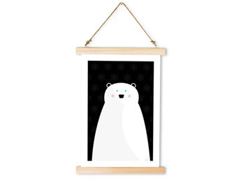 Viseče platno je na obeh straneh pritrjeno z lesenimi letvicami iz smrekovega lesa. Zahvaljujoč trpežni vrvici, ki je z ročaji pritrjena ob leseni okvir, lahko platno preprosto in elegantno obesite. Ponujamo vam različne barve obrob, ki jih lahko k platnu prilagodite po svojem okusu.