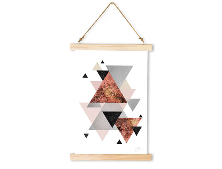 Viseče platno je na obeh straneh pritrjeno z lesenimi letvicami iz smrekovega lesa. Zahvaljujoč trpežni vrvici, ki je z ročaji pritrjena ob leseni okvir, lahko platno preprosto in elegantno obesite. Ponujamo vam različne barve obrob, ki jih lahko k platnu prilagodite po svojem okusu.
