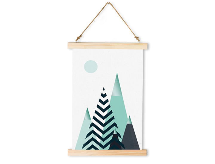 Viseče platno je na obeh straneh pritrjeno z lesenimi letvicami iz smrekovega lesa. Zahvaljujoč trpežni vrvici, ki je z ročaji pritrjena ob leseni okvir, lahko platno preprosto in elegantno obesite. Ponujamo vam različne barve obrob, ki jih lahko k platnu prilagodite po svojem okusu.