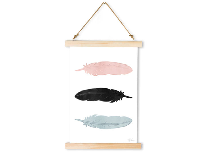 Viseče platno je na obeh straneh pritrjeno z lesenimi letvicami iz smrekovega lesa. Zahvaljujoč trpežni vrvici, ki je z ročaji pritrjena ob leseni okvir, lahko platno preprosto in elegantno obesite. Ponujamo vam različne barve obrob, ki jih lahko k platnu prilagodite po svojem okusu.