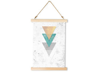 Viseče platno je na obeh straneh pritrjeno z lesenimi letvicami iz smrekovega lesa. Zahvaljujoč trpežni vrvici, ki je z ročaji pritrjena ob leseni okvir, lahko platno preprosto in elegantno obesite. Ponujamo vam različne barve obrob, ki jih lahko k platnu prilagodite po svojem okusu.