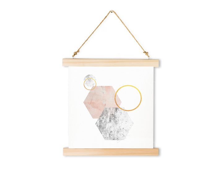 Viseče platno je na obeh straneh pritrjeno z lesenimi letvicami iz smrekovega lesa. Zahvaljujoč trpežni vrvici, ki je z ročaji pritrjena ob leseni okvir, lahko platno preprosto in elegantno obesite. Ponujamo vam različne barve obrob, ki jih lahko k platnu prilagodite po svojem okusu.