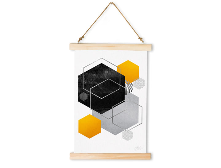 Viseče platno je na obeh straneh pritrjeno z lesenimi letvicami iz smrekovega lesa. Zahvaljujoč trpežni vrvici, ki je z ročaji pritrjena ob leseni okvir, lahko platno preprosto in elegantno obesite. Ponujamo vam različne barve obrob, ki jih lahko k platnu prilagodite po svojem okusu.