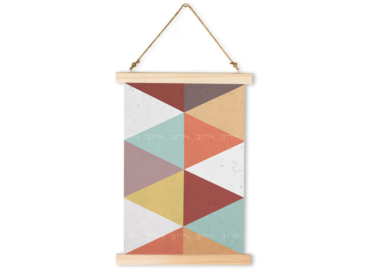 Viseče platno je na obeh straneh pritrjeno z lesenimi letvicami iz smrekovega lesa. Zahvaljujoč trpežni vrvici, ki je z ročaji pritrjena ob leseni okvir, lahko platno preprosto in elegantno obesite. Ponujamo vam različne barve obrob, ki jih lahko k platnu prilagodite po svojem okusu.
