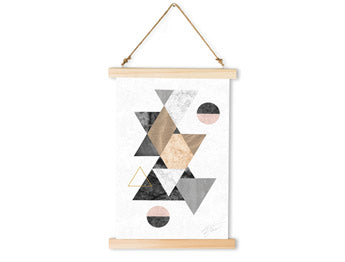 Viseče platno je na obeh straneh pritrjeno z lesenimi letvicami iz smrekovega lesa. Zahvaljujoč trpežni vrvici, ki je z ročaji pritrjena ob leseni okvir, lahko platno preprosto in elegantno obesite. Ponujamo vam različne barve obrob, ki jih lahko k platnu prilagodite po svojem okusu.
