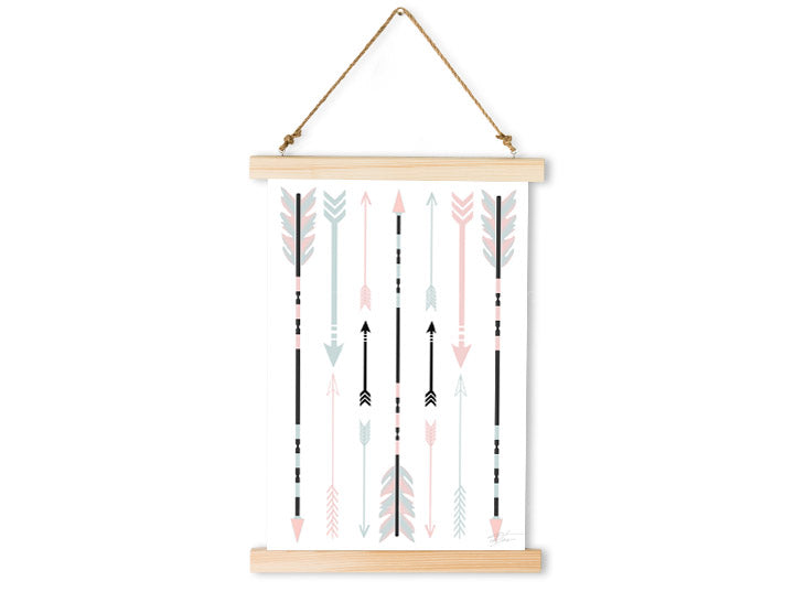 Viseče platno je na obeh straneh pritrjeno z lesenimi letvicami iz smrekovega lesa. Zahvaljujoč trpežni vrvici, ki je z ročaji pritrjena ob leseni okvir, lahko platno preprosto in elegantno obesite. Ponujamo vam različne barve obrob, ki jih lahko k platnu prilagodite po svojem okusu.