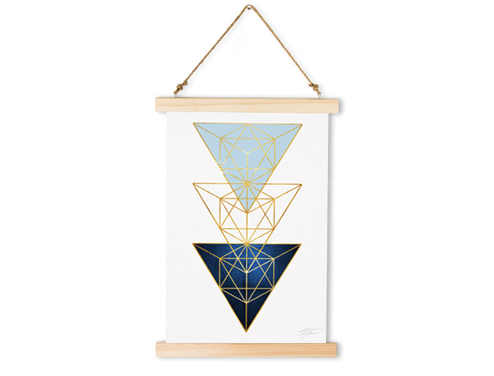 Viseče platno je na obeh straneh pritrjeno z lesenimi letvicami iz smrekovega lesa. Zahvaljujoč trpežni vrvici, ki je z ročaji pritrjena ob leseni okvir, lahko platno preprosto in elegantno obesite. Ponujamo vam različne barve obrob, ki jih lahko k platnu prilagodite po svojem okusu.