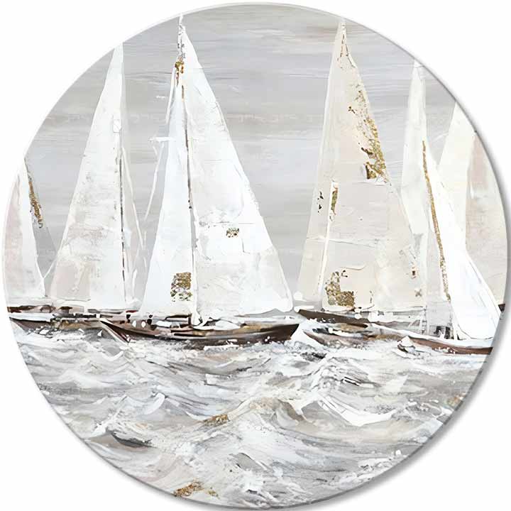 Okrogle slike, ki se razlikujejo od tradicionalnih pravokotnih oblik, dodajo element tekočnosti in vizualne neskončnosti vsaki notranjosti. Njihova edinstvena oblika širi meje tradicionalnega dojemanja umetnosti, odpira nove možnosti kompozicije in oblikovanja ter v vaše domove in pisarne vnaša dinamiko in svežino.