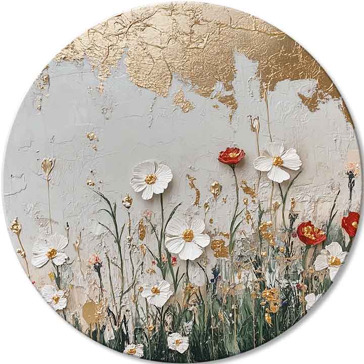 Okrogle slike, ki se razlikujejo od tradicionalnih pravokotnih oblik, dodajo element tekočnosti in vizualne neskončnosti vsaki notranjosti. Njihova edinstvena oblika širi meje tradicionalnega dojemanja umetnosti, odpira nove možnosti kompozicije in oblikovanja ter v vaše domove in pisarne vnaša dinamiko in svežino.