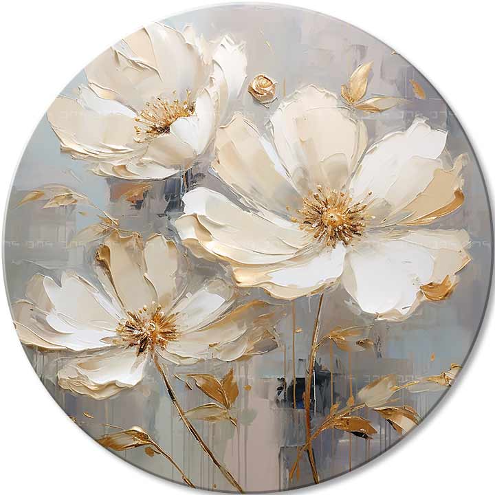Okrogle slike, ki se razlikujejo od tradicionalnih pravokotnih oblik, dodajo element tekočnosti in vizualne neskončnosti vsaki notranjosti. Njihova edinstvena oblika širi meje tradicionalnega dojemanja umetnosti, odpira nove možnosti kompozicije in oblikovanja ter v vaše domove in pisarne vnaša dinamiko in svežino.