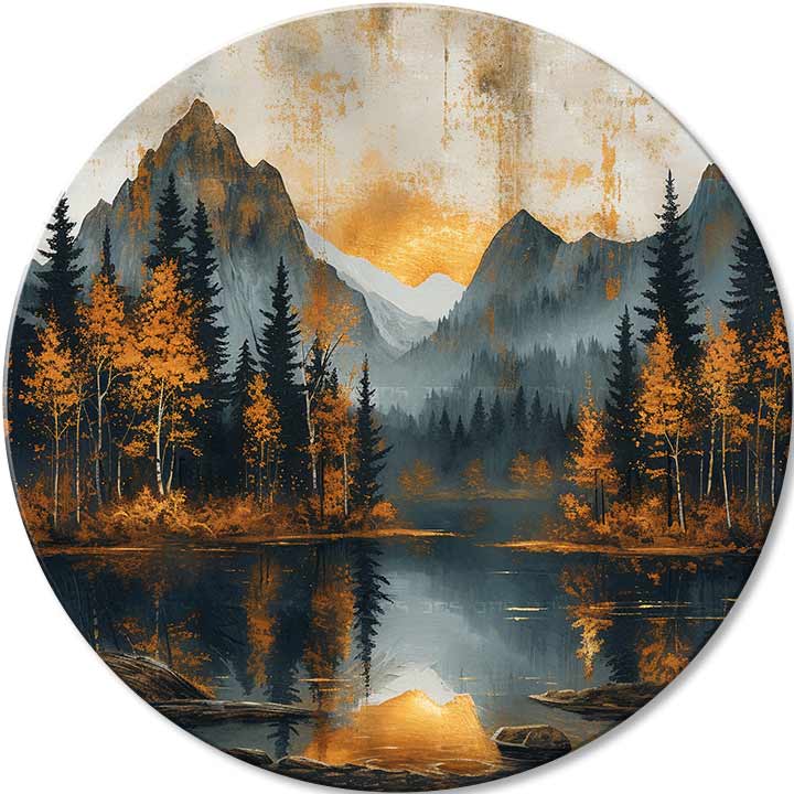 Okrogle slike z akrilom Somrak v mirni dolini | različne dimenzije