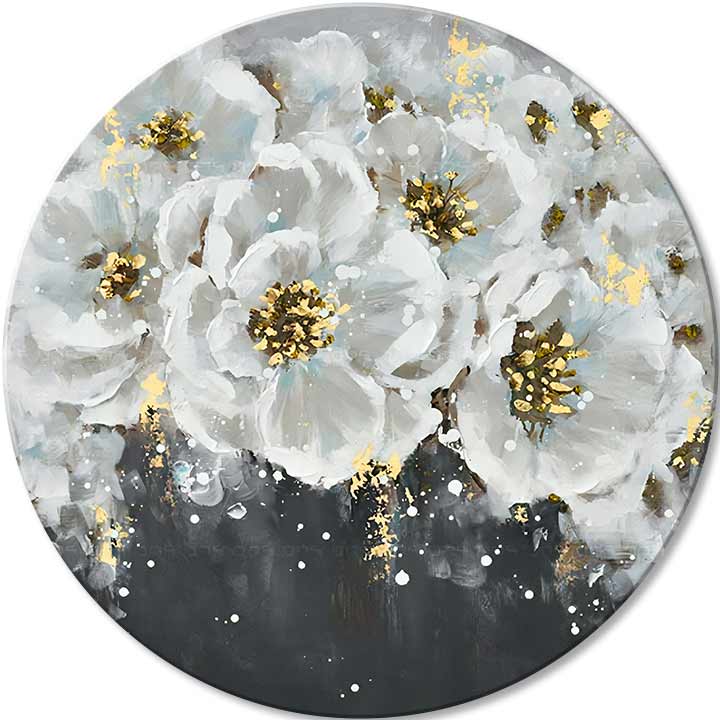 Okrogle slike, ki se razlikujejo od tradicionalnih pravokotnih oblik, dodajo element tekočnosti in vizualne neskončnosti vsaki notranjosti. Njihova edinstvena oblika širi meje tradicionalnega dojemanja umetnosti, odpira nove možnosti kompozicije in oblikovanja ter v vaše domove in pisarne vnaša dinamiko in svežino.