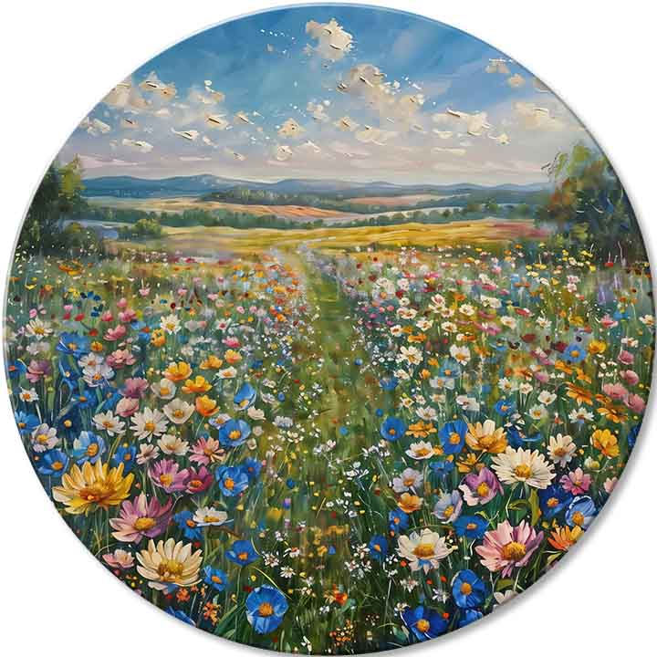 Okrogle slike, ki se razlikujejo od tradicionalnih pravokotnih oblik, dodajo element tekočnosti in vizualne neskončnosti vsaki notranjosti. Njihova edinstvena oblika širi meje tradicionalnega dojemanja umetnosti, odpira nove možnosti kompozicije in oblikovanja ter v vaše domove in pisarne vnaša dinamiko in svežino.