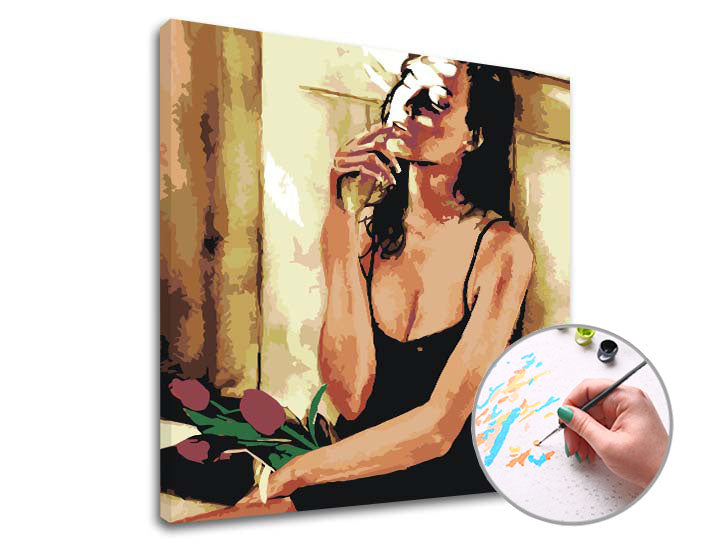 Slikanje po številkah Ženska s cvetjem | nizka težavnost