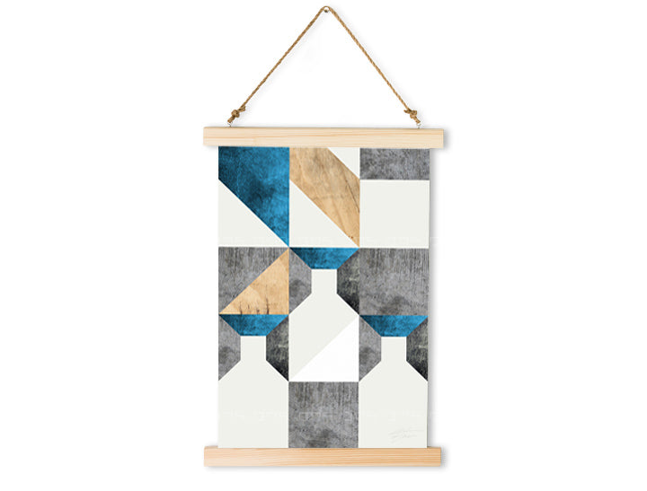 Viseče platno je na obeh straneh pritrjeno z lesenimi letvicami iz smrekovega lesa. Zahvaljujoč trpežni vrvici, ki je z ročaji pritrjena ob leseni okvir, lahko platno preprosto in elegantno obesite. Ponujamo vam različne barve obrob, ki jih lahko k platnu prilagodite po svojem okusu.