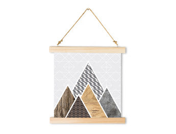Viseče platno je na obeh straneh pritrjeno z lesenimi letvicami iz smrekovega lesa. Zahvaljujoč trpežni vrvici, ki je z ročaji pritrjena ob leseni okvir, lahko platno preprosto in elegantno obesite. Ponujamo vam različne barve obrob, ki jih lahko k platnu prilagodite po svojem okusu.