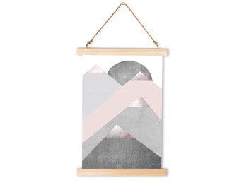 Viseče platno je na obeh straneh pritrjeno z lesenimi letvicami iz smrekovega lesa. Zahvaljujoč trpežni vrvi, ki je z ročaji pritrjena ob leseni okvir, lahko platno preprosto in elegantno obesite. Ponujamo vam različne barve obrob, ki jih lahko k platnu prilagodite po svojem okusu.