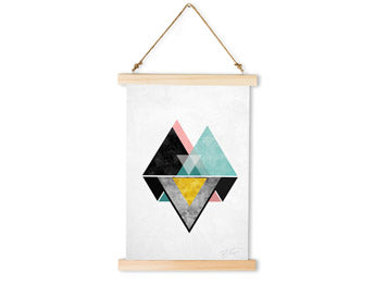 Viseče platno je na obeh straneh pritrjeno z lesenimi letvicami iz smrekovega lesa. Zahvaljujoč trpežni vrvici, ki je z ročaji pritrjena ob leseni okvir, lahko platno preprosto in elegantno obesite. Ponujamo vam različne barve obrob, ki jih lahko k platnu prilagodite po svojem okusu.