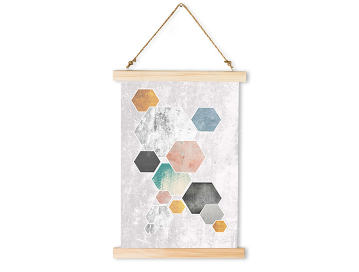 Viseče platno je na obeh straneh pritrjeno z lesenimi letvicami iz smrekovega lesa. Zahvaljujoč trpežni vrvici, ki je z ročaji pritrjena ob leseni okvir, lahko platno preprosto in elegantno obesite. Ponujamo vam različne barve obrob, ki jih lahko k platnu prilagodite po svojem okusu.