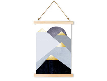 Viseče platno je na obeh straneh pritrjeno z lesenimi letvicami iz smrekovega lesa. Zahvaljujoč trpežni vrvici, ki je z ročaji pritrjena ob leseni okvir, lahko platno preprosto in elegantno obesite. Ponujamo vam različne barve obrob, ki jih lahko k platnu prilagodite po svojem okusu.